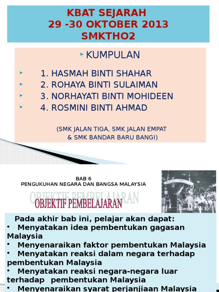 Bincangkan tanggungjawab generasi kini dalam memastikan proses pembinaan negara dan bangsa Malaysia yang lebih bersatu padu. Bab 5 pembentukan malaysia buku teks ms. 111 PEMBENTUKAN MALAYSIA Bab 6 Tingkatan 5 Penubuhan negara bangsa Malaysia yang berdaulat telah melalui pelbagai rintangan dan cabaran.